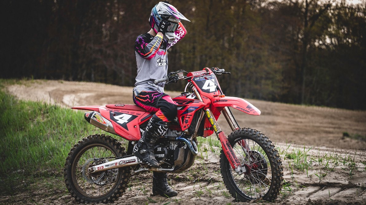 Flat seat/tank junctionThe CRF250R’s flat seat/tank junction makes it easy to move forward and backward on the bike. |