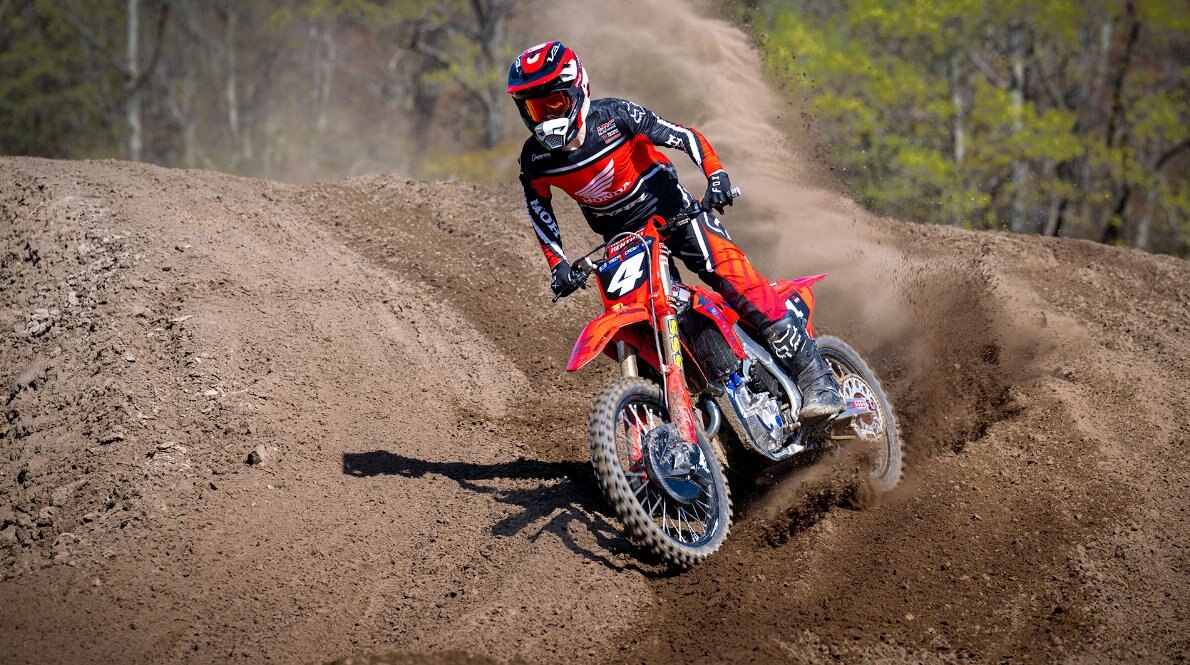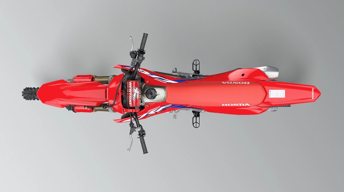 Light frameTo match an impressive engine performance, Honda engineers built a frame to CRF450R-spec, resulting in a stable and light ride. |